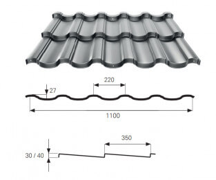 25 mikron vastagságú poliészter lakkal bevont alumíniumlemez. Az ebből az anyagból készült termékek használata akár 2,5-szer csökkentheti a burkolóanyag súlyát. Az alapmodell 3 színt tartalmaz, de lehetőség van a színmintán kívüli színben történő leszállításra is.